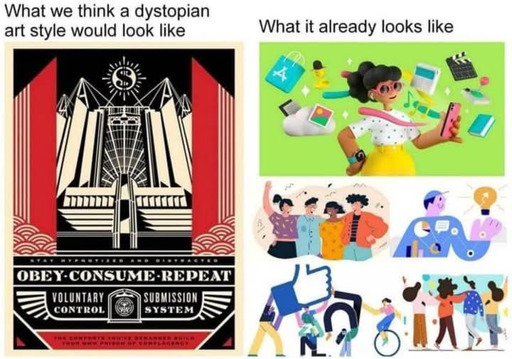 My city decided to stop pretending like it had a soul and has been using Corporate Memphis in all the local event billboards. Now I can really feel like I’m living in a propped up business experiment where art remains in spite of it, not because.