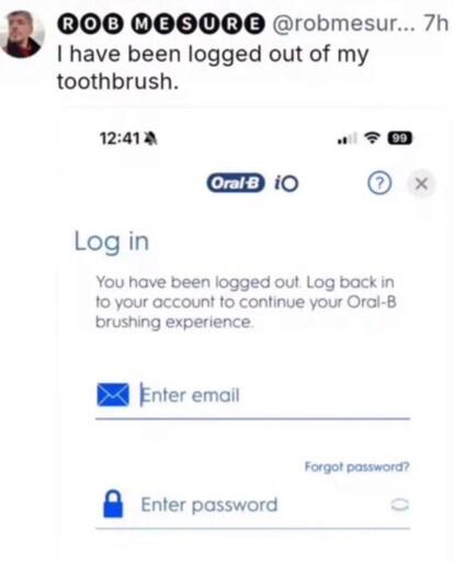 minus-squarebatsforpeace [any, any]@hexbear.netlinkfedilinkEnglisharrow-up30·7 days ago ‘you may not continue your toothbrush experience’